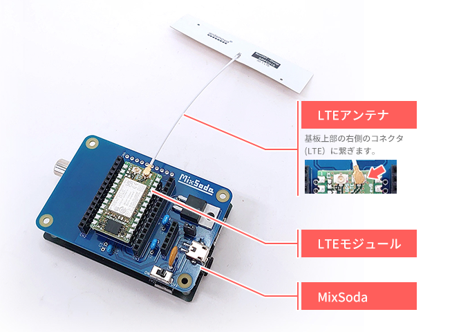 MixSodaのLEDで、電源とLTE接続の状況が分かります。