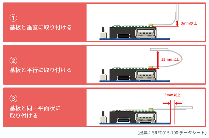 LTEアンテナの取り付け方は通信の感度に影響します。推奨するLTEアンテナの取り付け方は下記の3パターンです。